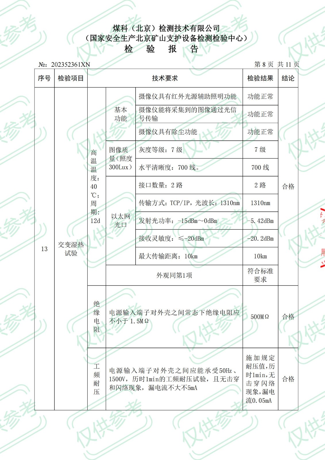 礦用本安型攝像儀檢 驗(yàn) 報(bào) 告KBA12