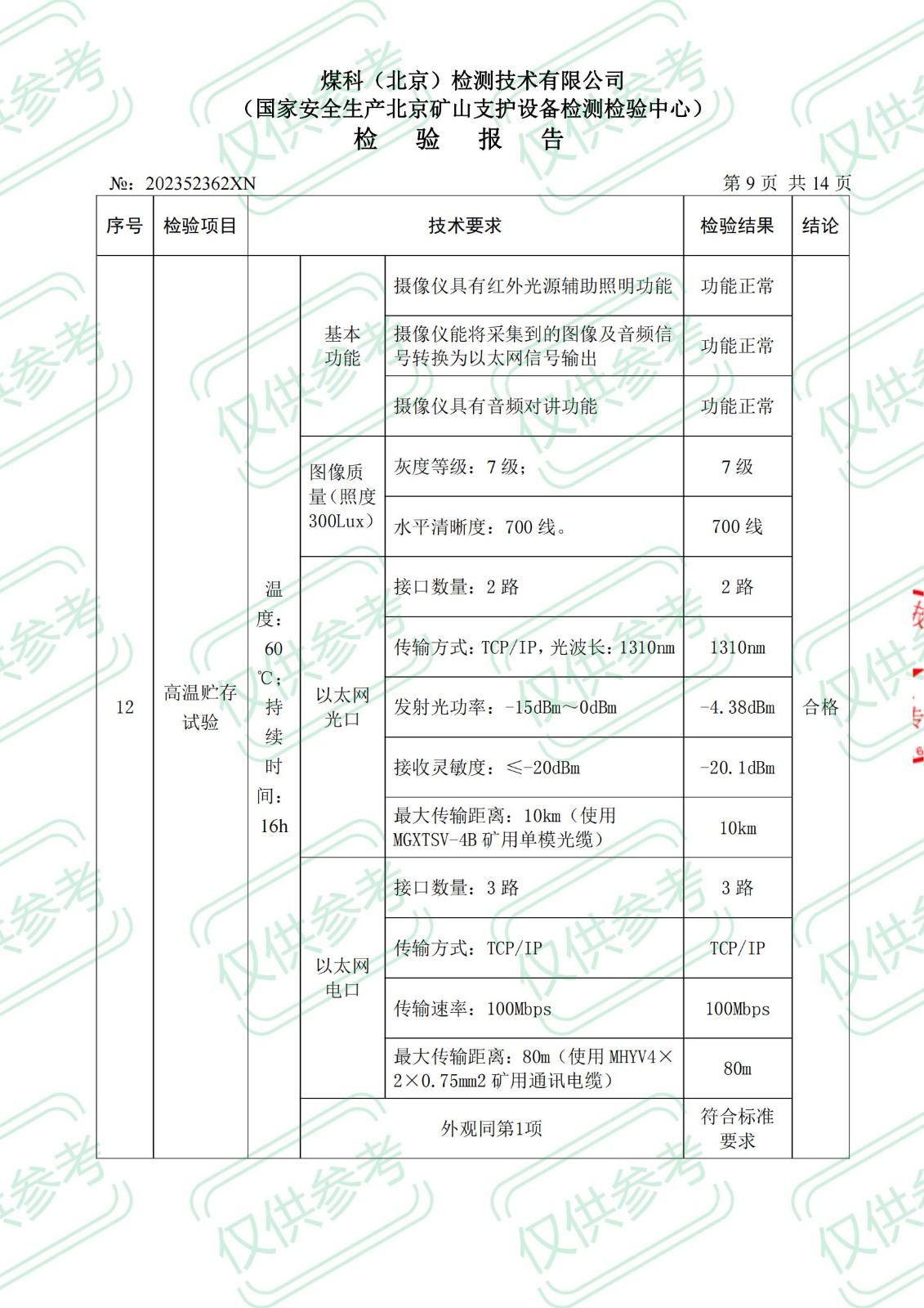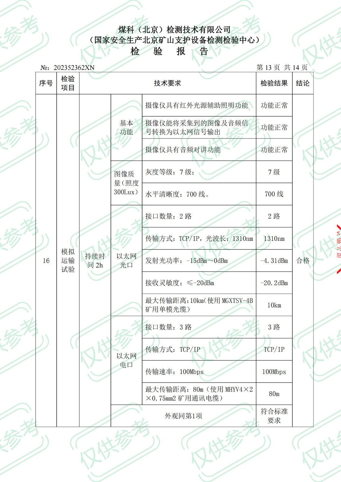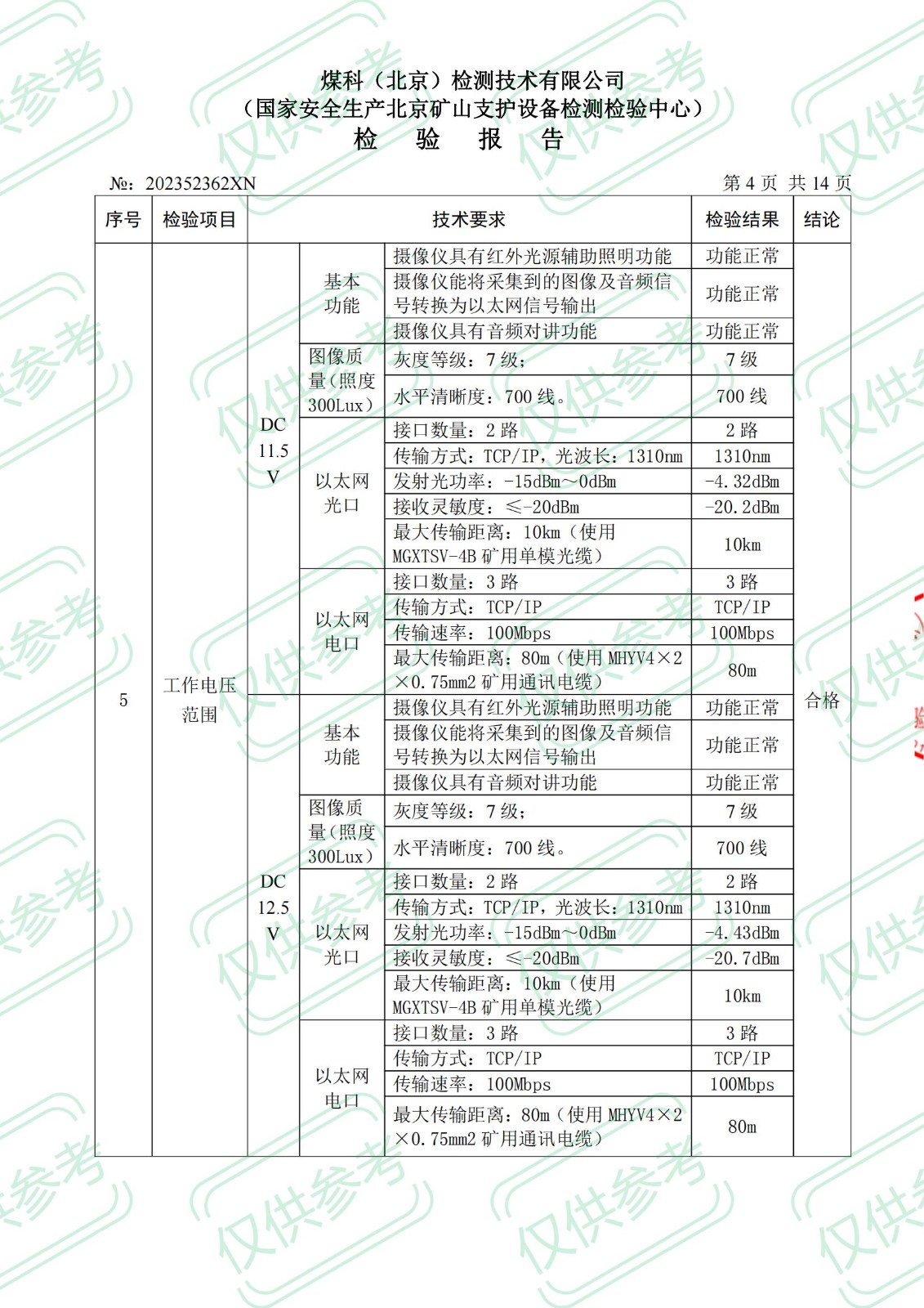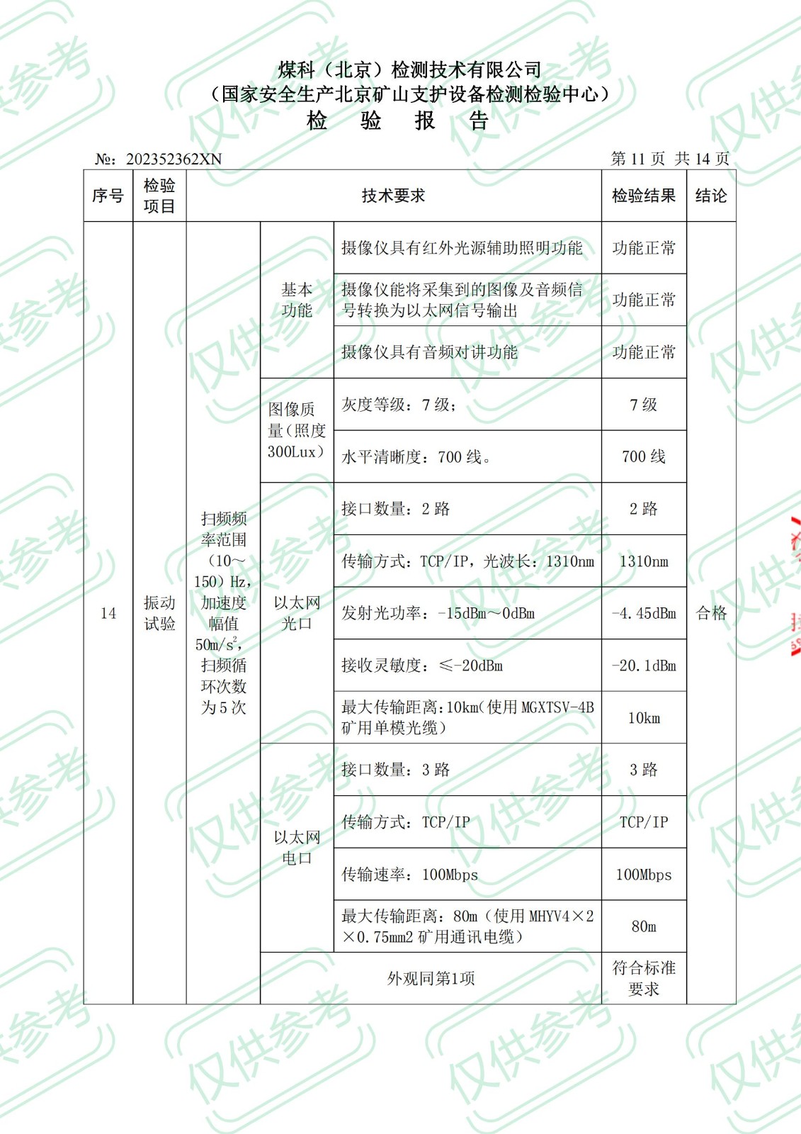 礦用本安型攝像儀檢 驗(yàn) 報(bào) 告KBA12